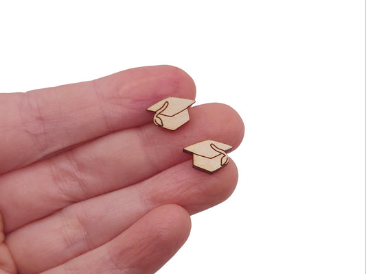 Graduation Cap Wood Cabochon Stud Earring Blanks
