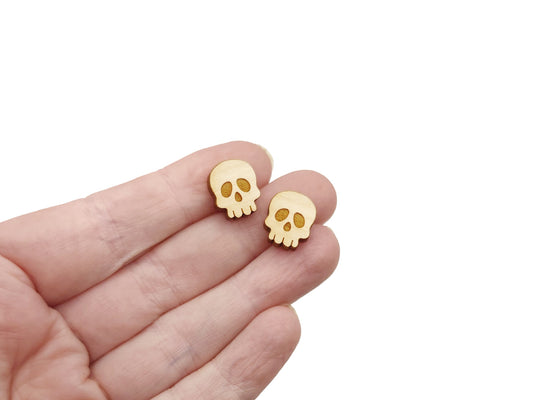 Spooky Skull Wood Cabochon Stud Earring Blanks
