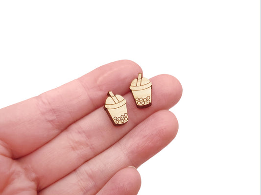 Boba Tea Wood Cabochon Stud Earring Blanks