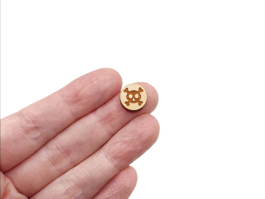 Pirate Skull & Bones Round Wood Cabochon Stud Earring Blanks