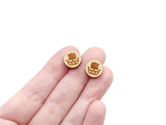 Pirate Ship Round Wood Cabochon Stud Earring Blanks