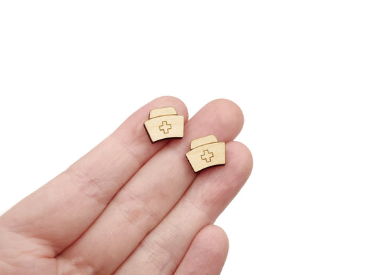 Nurse Hat Wood Cabochon Stud Earring Blanks