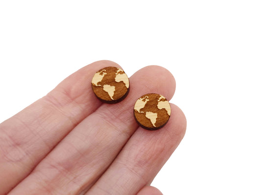 Planet Earth Wood Cabochon Stud Earring Blanks