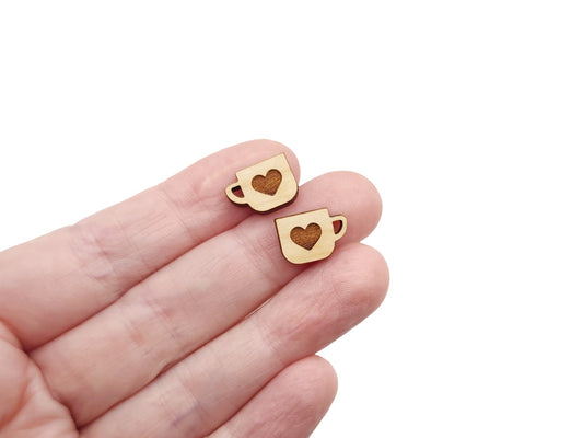 Heart Mug Wood Cabochon Stud Earring Blanks