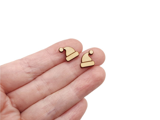 Santa Hat Wood Cabochon Stud Earring Blanks