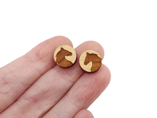 Horse Silhouette Round Wood Cabochon Stud Earring Blanks
