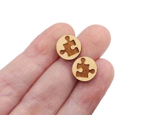 Puzzle Piece Round Wood Cabochon Stud Earring Blanks