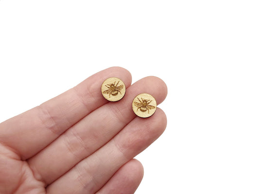 Bumble Bee Engraved Round Wood Cabochon Stud Earring Blanks