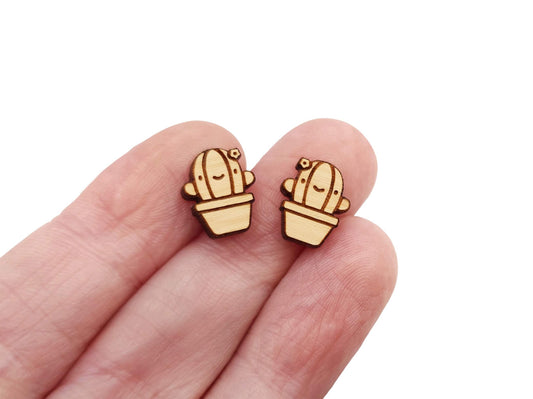 Happy Cactus Wood Cabochon Stud Earring Blanks