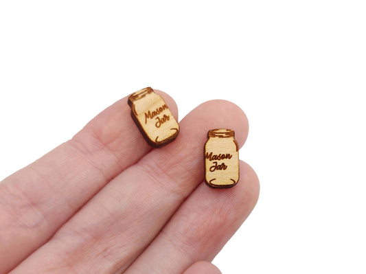 Mason Jar Wood Cabochon Stud Earring Blanks