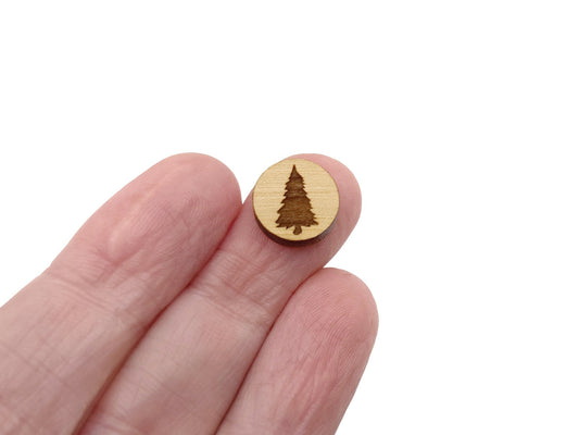 Pine Tree Round Wood Cabochon Stud Earring Blanks