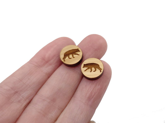 Wolf Silhouette Round Wood Cabochon Stud Earring Blanks