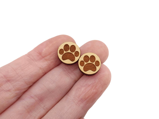 Paw Print Round Wood Cabochon Stud Earring Blanks
