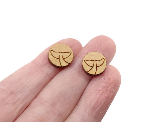 Whale Tail Engraved Round Wood Cutout Cabochon Earring Blanks