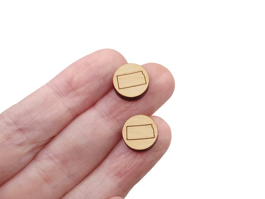 Kansas Outline Round Wood Cabochon Earring Blanks