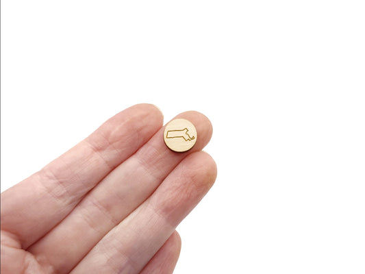 Massachusetts Outline Round Wood Cabochon Stud Earring Blanks