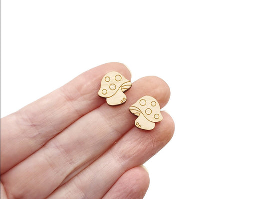 Spotted Mushroom Wood Cabochon Stud Earring Blanks