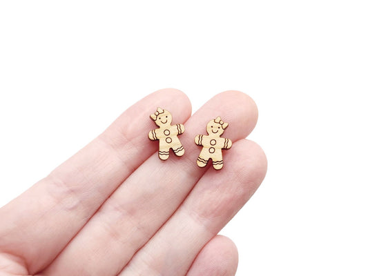Gingerbread Girl Wood Cabochon Stud Earring Blanks