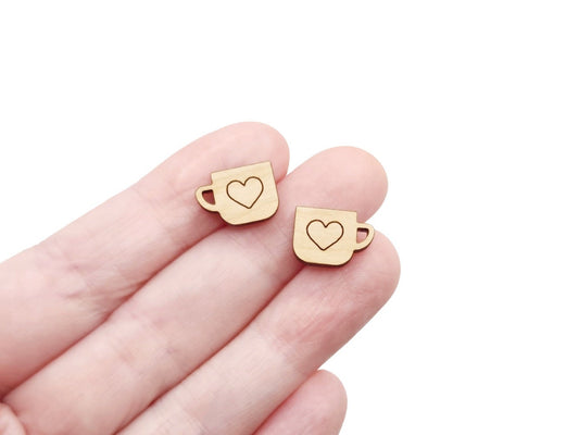 Mug with Heart Wood Cabochon Stud Earring Blanks