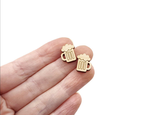 Beer Mug Wood Cabochon Stud Earring Blanks