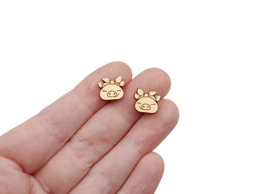 Bandana Pig Engraved Wood Cabochon Stud Earring Blanks