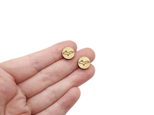 Michigan Upper Outline Round Wood Cabochon Stud Earring Blanks
