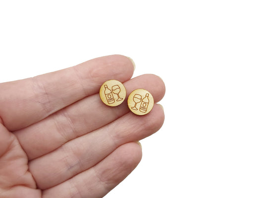 Wine Glass & Bottle Round Wood Cabochon Stud Earring Blanks