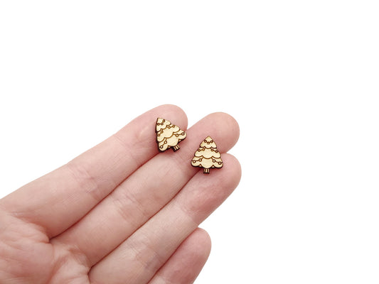 Decorated Christmas Tree Wood Cabochon Stud Earring Blanks