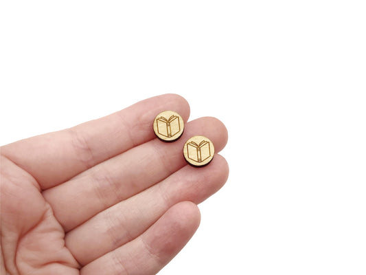 Open Book Round Wood Cabochon Stud Earring Blanks