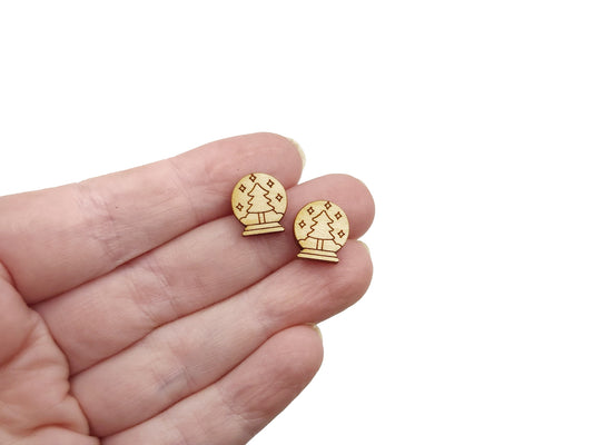 Snow Globe Wood Cabochon Stud Earring Blanks