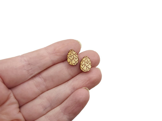 Hearts Easter Egg Wood Cabochon Stud Earring Blanks