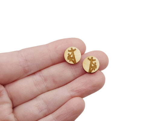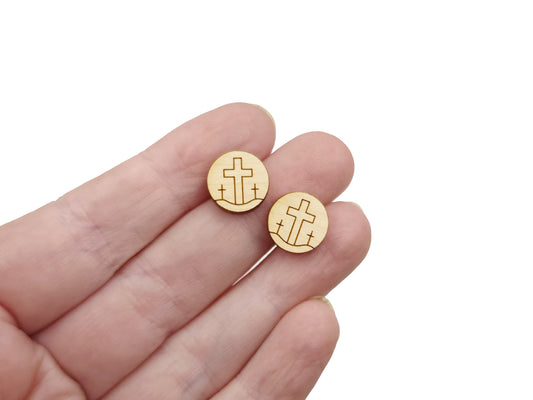 Easter Crosses Round Wood Cabochon Stud Earring Blanks