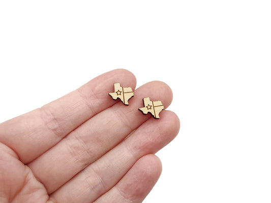 Texas Shaped Flag Wood Cabochon Stud Earring Blanks