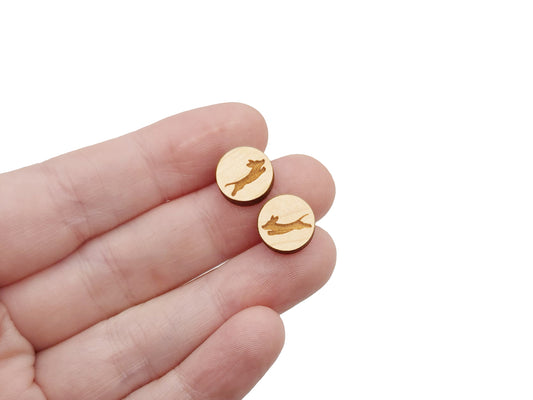 Leaping Dachshund Round Wood Cabochon Stud Earring Blank
