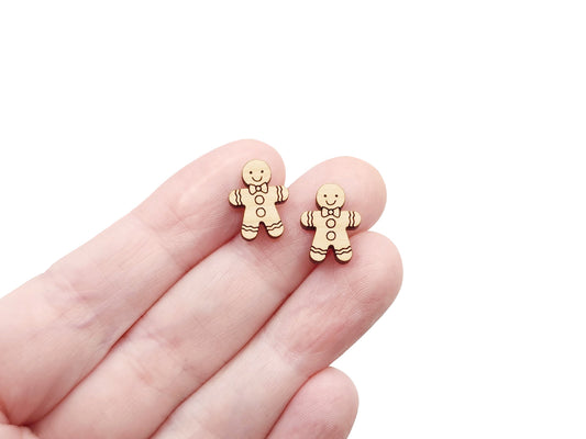 Gingerbread Man Wood Cabochon Stud Earring Blanks