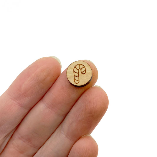 Candy Cane Engraved Mini Circle Shaped Wood Jewelry Blanks
