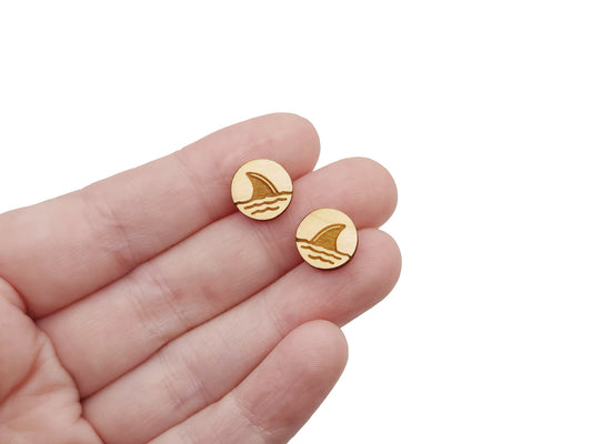 Shark Fin Engraved Round Wood Cutout Cabochon Earring Blanks