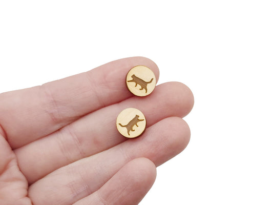 Cat Silhouette Round Wood Cabochon Stud Earring Blanks