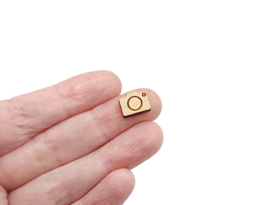 Camera Engraved Wood Cabochon Stud Earring Blanks