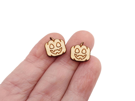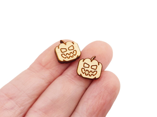Jack-O-Lantern Wood Cabochon Stud Earring Blanks