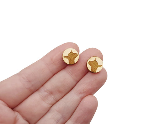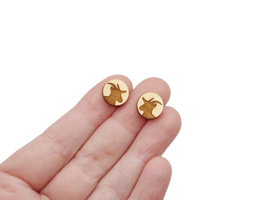 Goat Silhouette Round Wood Cabochon Stud Earring Blanks