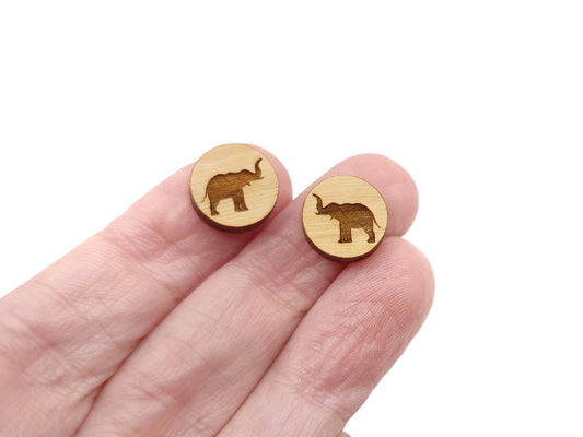 Elephant Silhouette Round Wood Cabochon Stud Earring Blanks