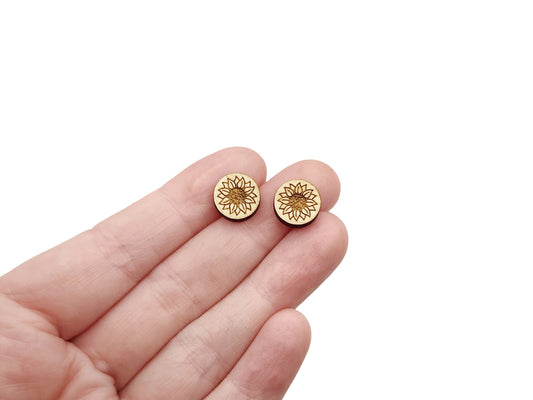 Sunflower Engraved Mini Circle Shaped Wood Jewelry Blanks