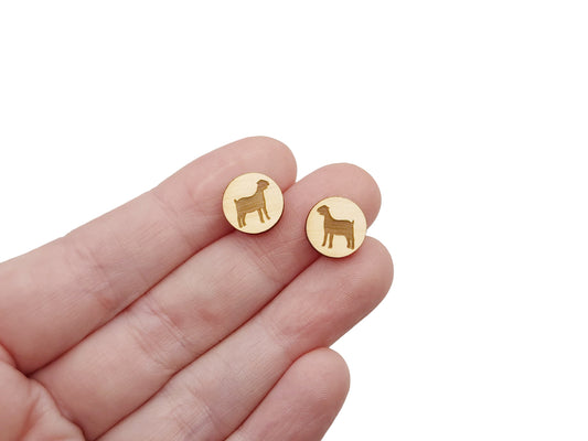 Dairy Goat Silhouette Round Wood Cabochon Stud Earring Blanks