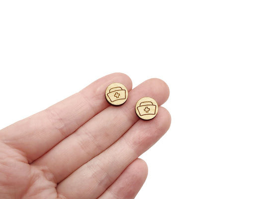 Nurse Hat Round Wood Cabochon Stud Earring Blanks