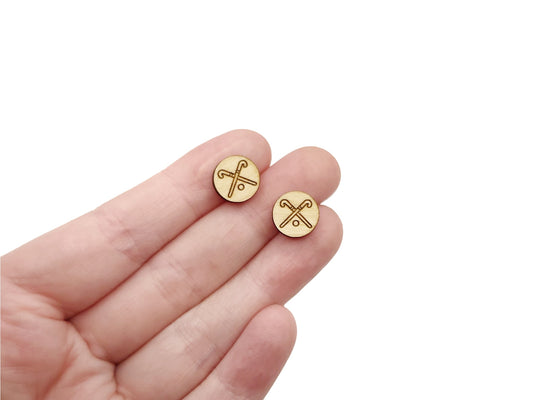 Field Hockey Round Wood Cabochon Stud Earring Blanks
