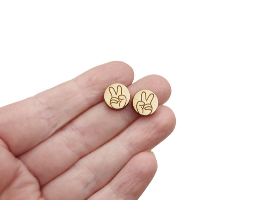 Peace Sign Round Wood Cabochon Stud Earring Blanks